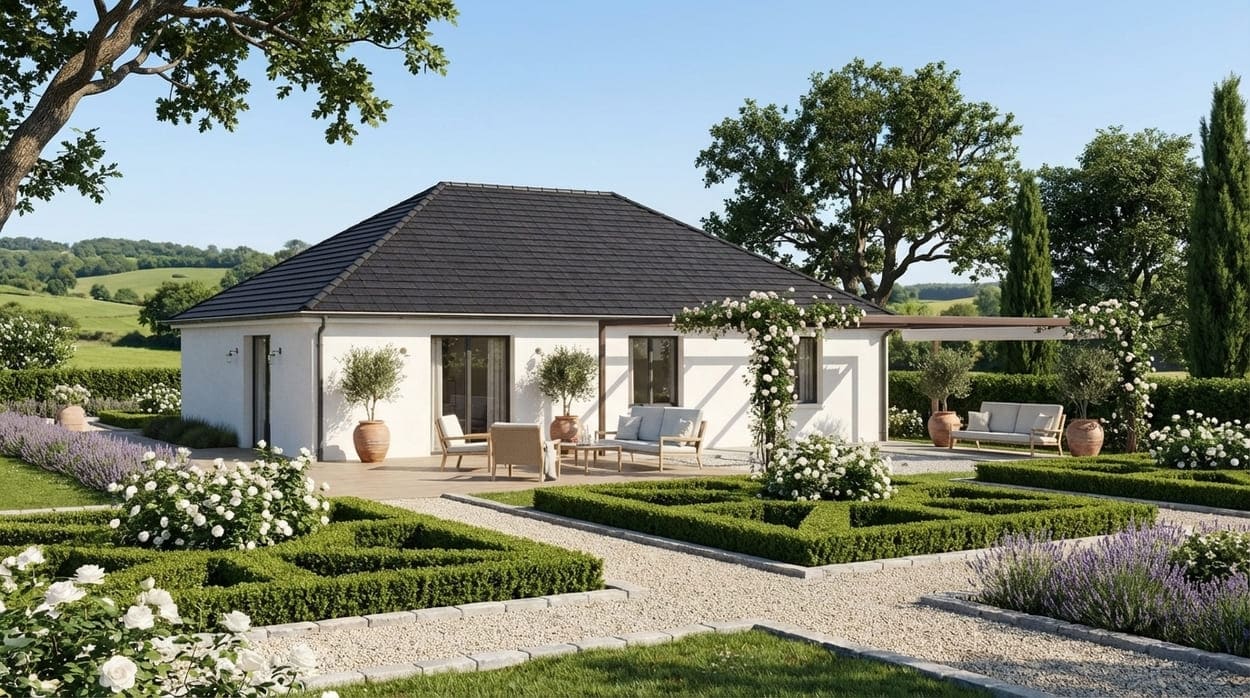 Maison modulable, très fonctionnelle avec ou sans garage, la Lucia séduit avec sa toiture 4 ou 6 versants et sa forme en L