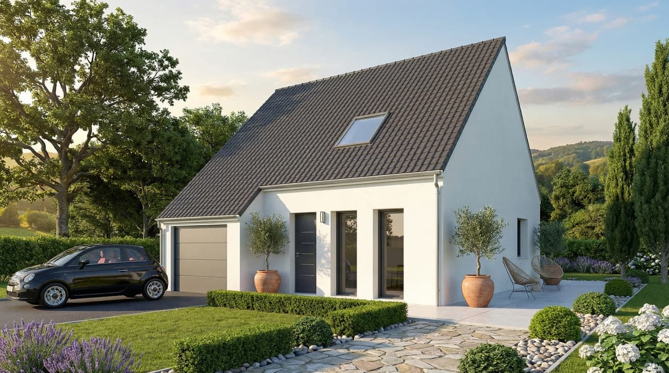 *Prix total se décomposant ente un prix terrain et un prix de construction assurance dommage ouvrage incluse, communiqué à titre indicatif et susceptible de modifications. La Société Maison et Jardin n’est pas mandaté pour réaliser la vente du terrain. Sauf mentions express dans l’annonce, le prix indiqué s’entend avec installation de chauffage par Poêle à Granulés mais hors frais de notaire et coûts éventuels de viabilisation pour le terrain. Le prix tient également compte d'une construction sur un terrain réputé plat et de portance minimum de 2kg/cm². La société Maison et Jardin s’efforce d’assurer une mise à jour régulière de ses annonces. Elle ne peut cependant être tenue pour responsable d’un éventuel défaut de mise à jour d’une quelconque de ces annonces. Visuels non contractuels. Les informations sur les risques auxquels ce terrain est exposé sont disponibles sur le site Géorisques (www.georisques.gouv.fr).